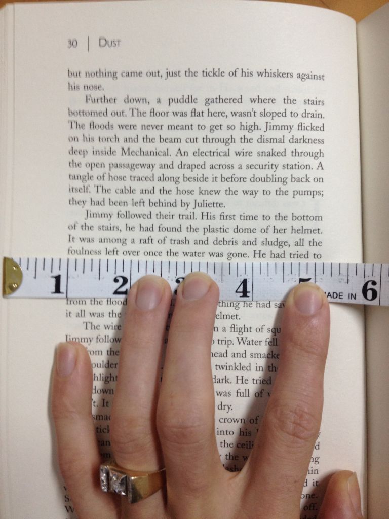(BTW, I would have gone a font size smaller and added a little more spacing between the lines… Dust is exactly 400 pages, the extra margin spacing and larger size – 6×9 – makes it more hefty and epic, but the font size makes it seem more like a YA book and the line spacing is a little cramped).