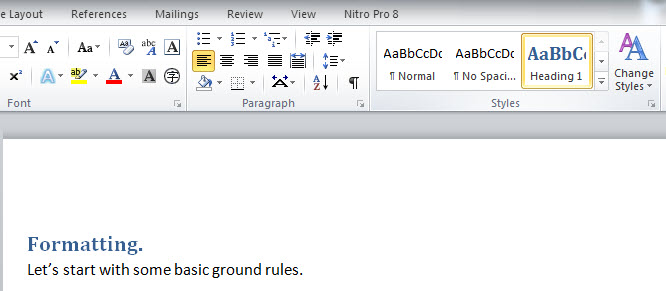 What you don’t want to do is decide to change your header font and then go back and have to manually fix every instance. When an author uses nothing but the default “normal” style – if I change and update that style it erases everything from all the headers, headings and other elements back to “normal.”