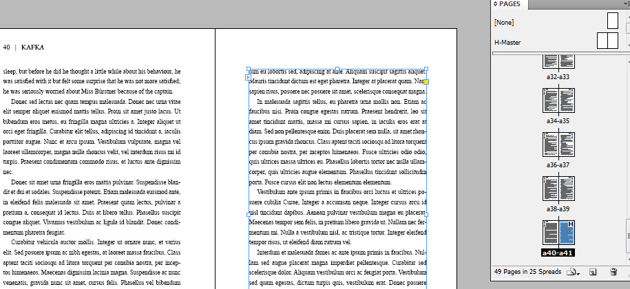 So now I’ve pasted the rest of my book, but I still need to go through it and apply the styles to all the chapter pages; and also apply the right master page to those pages (and remove it from any that should be ‘normal’ pages with the header and footer).