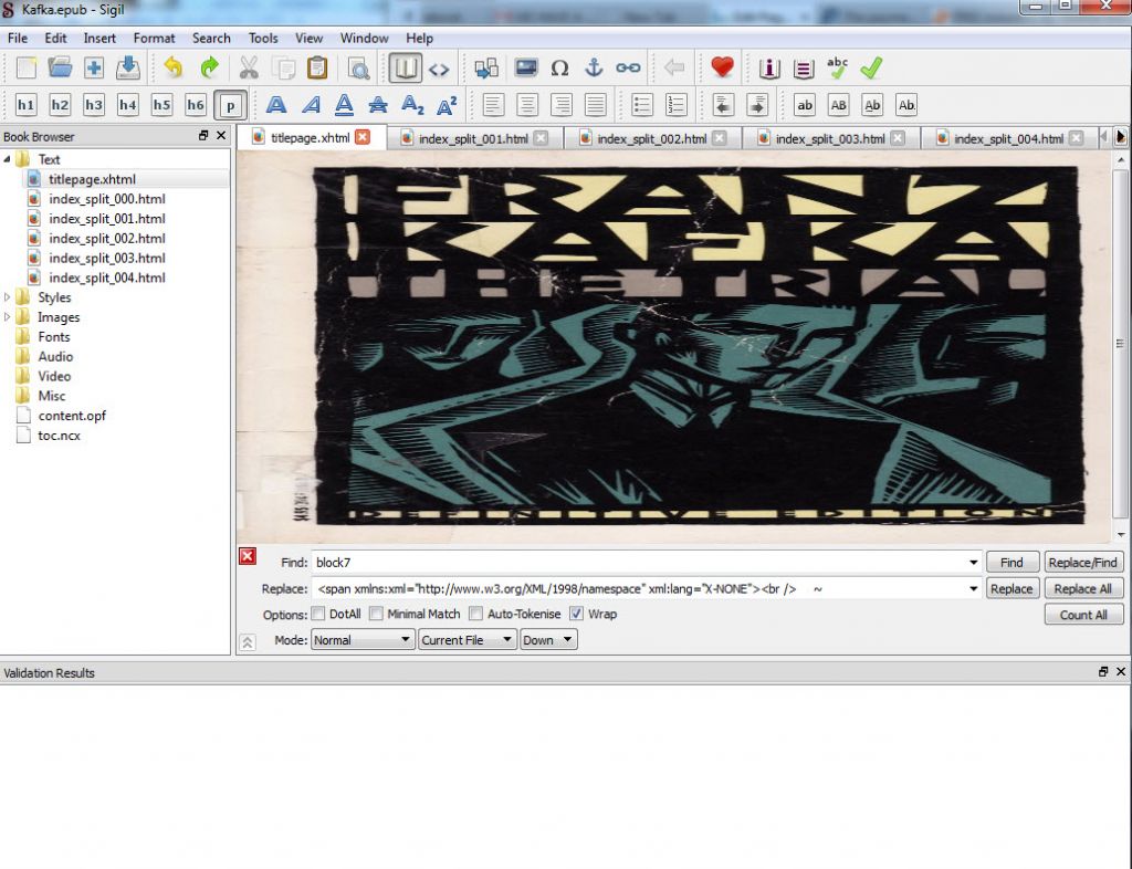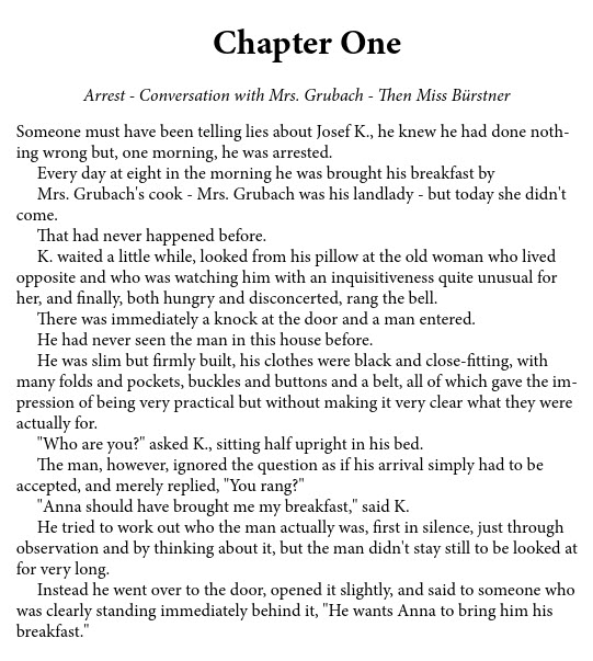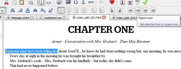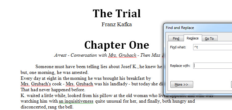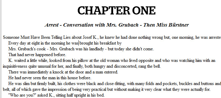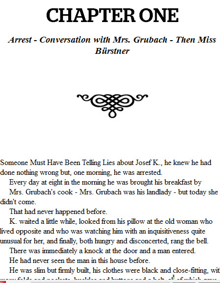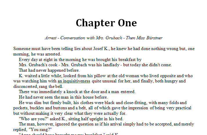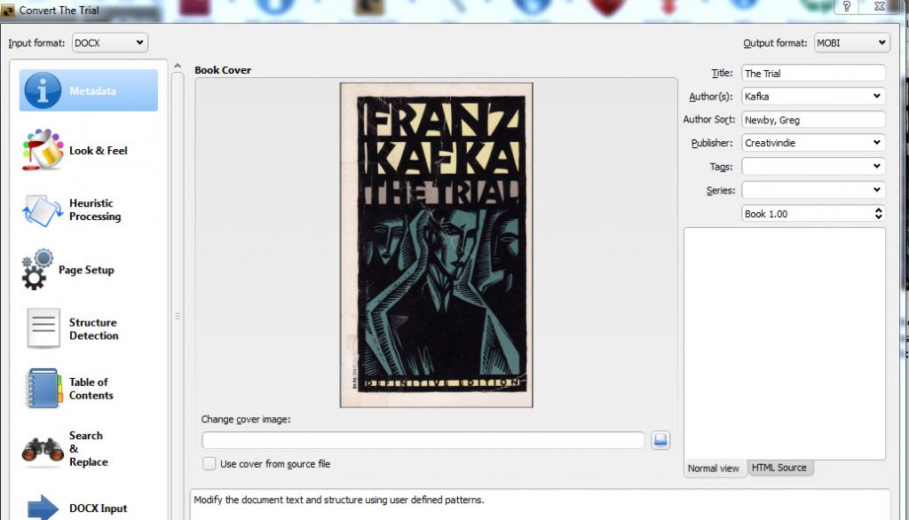 If your book is in an MS Word file, you should actually have saved a simple copy, before you did any print formatting. That’s because your book file needs to be pretty simple to convert it to ebook. I’m going to use Kafka’s The Trial for this tutorial.