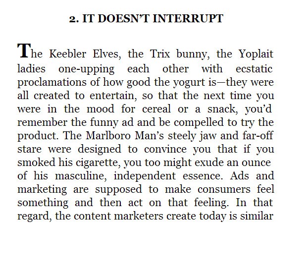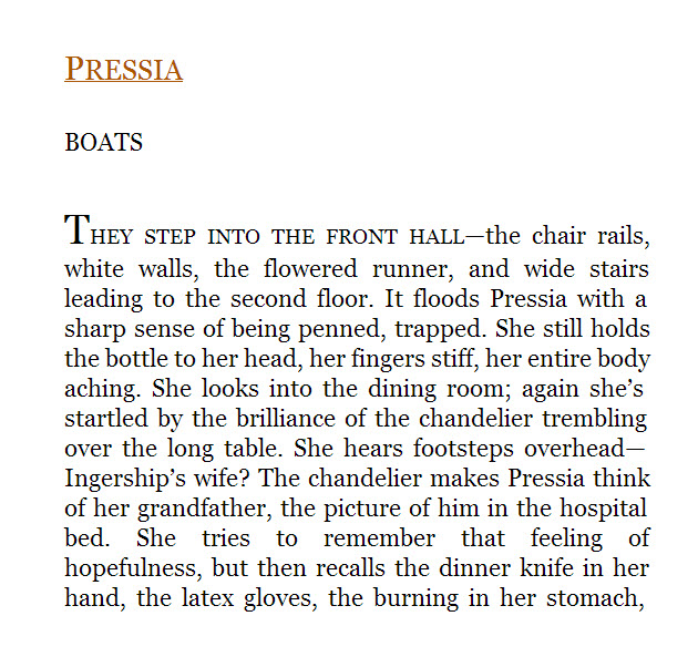 Basically, you’ll use “H1” or “H2” tags for headers. Your text will be justified. The first paragraphs of each chapter will be non-indented. And maybe you’ll offset the first line in all caps, or a slightly bolded or larger first sentence.