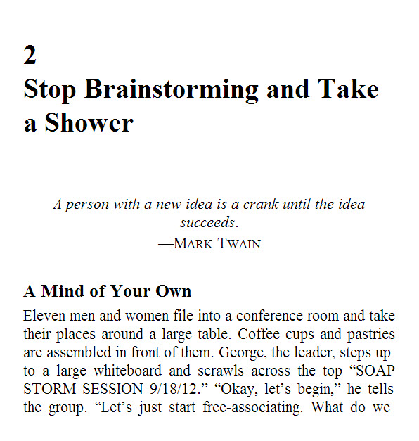 One thing to notice: my computer screen is pretty wide, but If I make the window more narrow (like most ebook readers) my subtitle breaks into two lines. This is annoying, but common – the only way to fix it would be to make the text smaller. If you test it on some ebook readers and it always breaks, you could try a smaller size. Perhaps just bold italics and not a header tag.